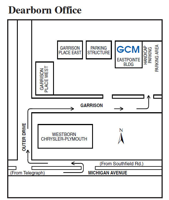 Our Dearborn office (19853 W. Outer Dr., Suite 102, Dearborn, MI 48124) serves the Western Wayne and Downriver areas. It is in the 3rd large building (called Safeway Buildng) on Garrison which leads off of Outer Dr. It is just north of Michigan Ave. and approx. 1/2 mile east of Telegraph. Handicap parking is directly across from the build entrance. There is ample parking in the front (east) of the building. Enter the building and our office is conveniently located just to the right in Suite 102.
