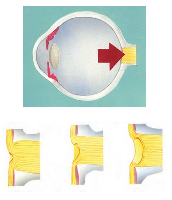 Abnormally high pressure for an extended period of time in eyes with glaucoma creates damage to the optic nerve and loss of vision.